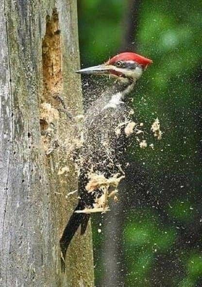 ช็อตเด็ดสัตว์โลก : ภาพจังหวะที่น่าทึ่งมากของ "นกหัวขวาน" ที่กำลังเจาะไม้ด้วยความเร็วสูง จนแทบมองไม่ทัน