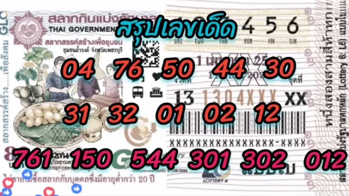 เลขท้าย 2 ตัว: 04, 76, 43, 30, 31, 32, 01 และ 12