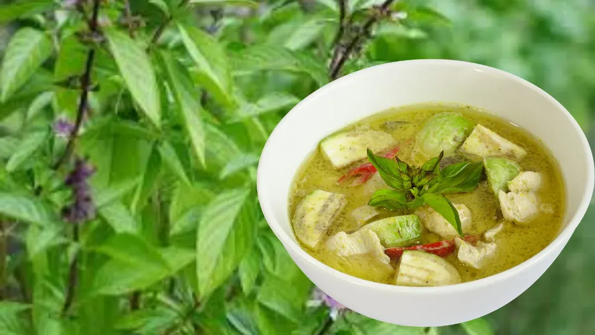 เลือกโหระพา เมื่อต้องการความหอมหวานนุ่มนวลเพื่อชูรสแกงกะทิหรือผัดพริกแกง