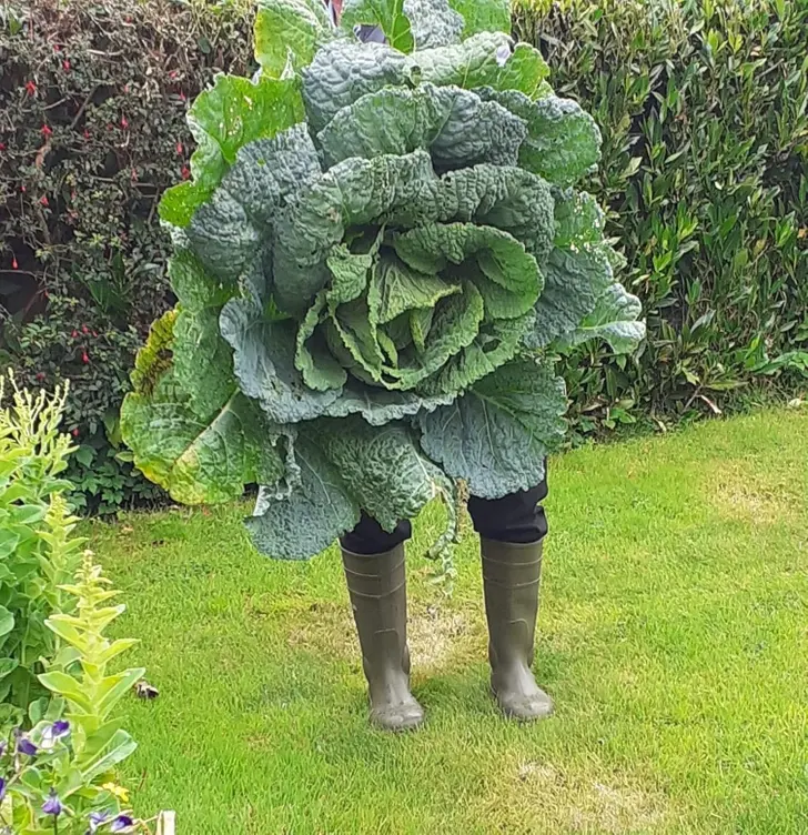 19. คุณตาของฉันกำลังอวดกะหล่ำปลียักษ์ที่เขาปลูกเองแหละ
