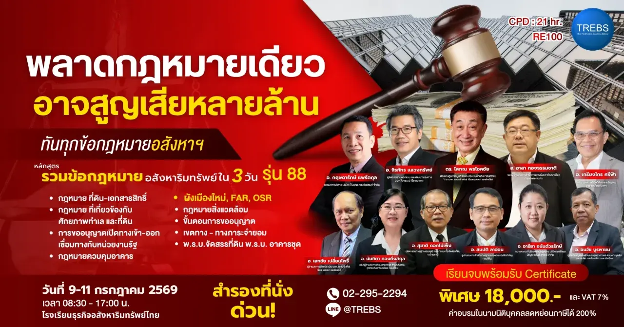 หลักสูตร รวมข้อกฎหมายอสังหาริมทรัพย์ (RE100) รุ่นที่ 88