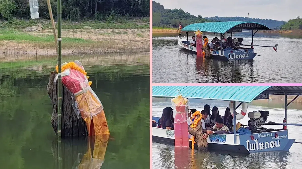 ฮือฮา! ชุดไทยแขวนตอต้นตะเคียนกลางน้ำโคราช เปิดตำนาน "ย่าค๊อก" แห่งเขื่อนลำแชะ นักเสี่ยงโชคแห่ส่องเลขเด็ด