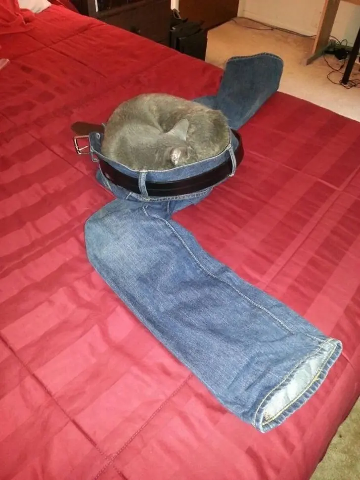 11. การทำเตียงนอนแมวจากกางเกงยีนเป็นอะไรที่สุดยอดมากสำหรับเจ้าเหมียวทั้งหลาย