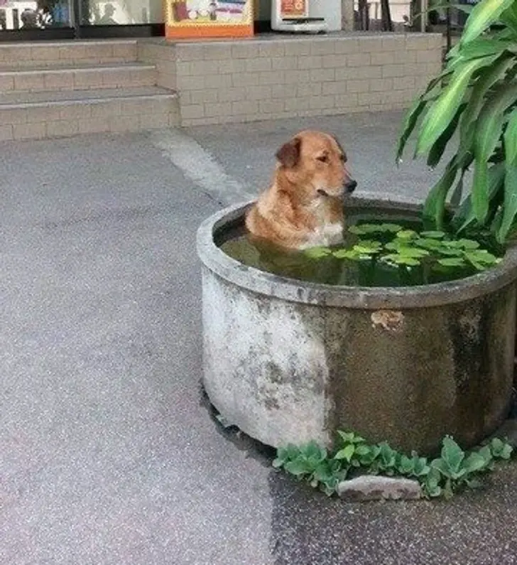 12. วันนี้ฉันเจอหมาตัวหนึ่งกำลังนั่งชิลอยู่ในอ่างกำลังแช่น้ำอย่างสบายใจ