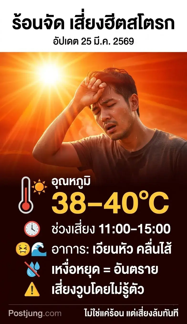 วันที่ 25 มีนาคม 2569 เวลา 08:30 น. กรมอุตุนิยมวิทยารายงานว่า อุณหภูมิไทยพุ่งแตะ 38–40 องศา แม้เตือนเลี่ยงแดด แต่คนไทยยังต้องใช้ชีวิตกลางแจ้ง