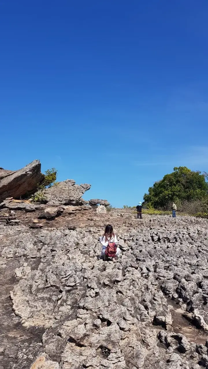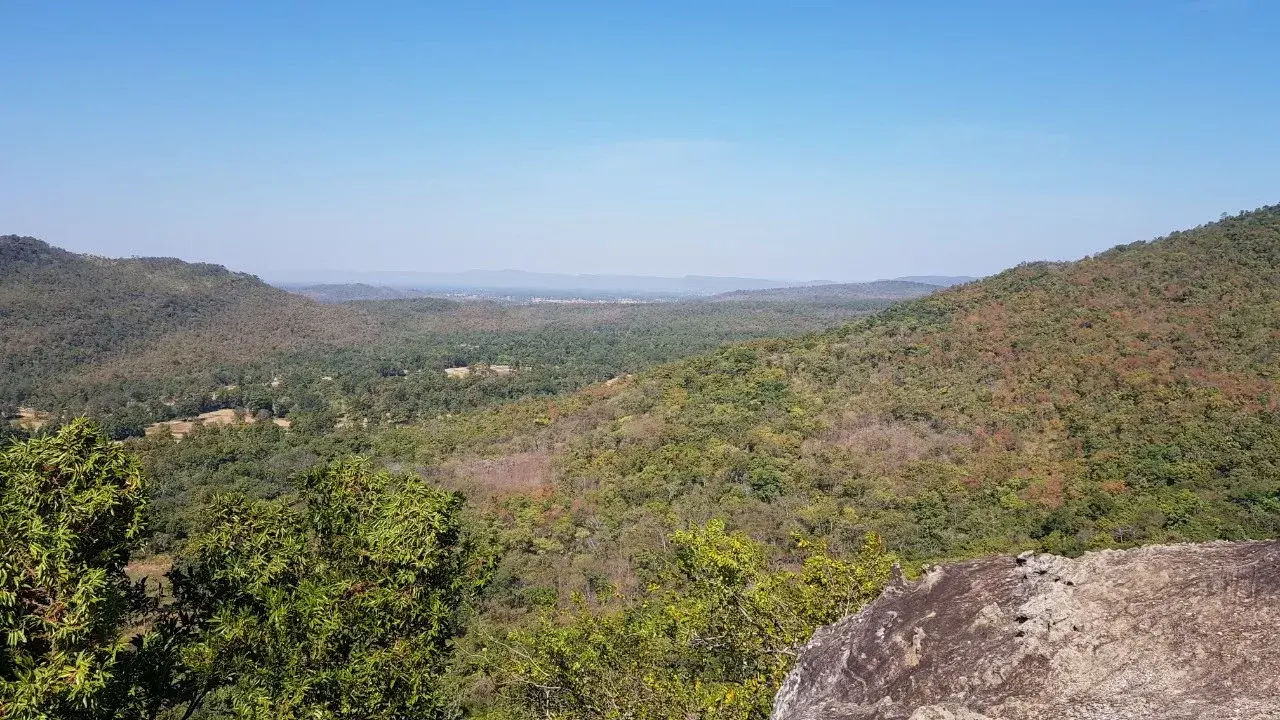 การมองลงไปยังด้านหน้าของเขานั้นเราจะเห็นแท่นหินขนาดใหญ่นั้นยื่นออกมาด้านหน้า เมื่อการนั่งลงไปในกินก้อนใหญ่ จะมีต้นไม้อย่างหลากหลายมาก เมื่อเรานั้นมองลงไปด้านล่างนั้นจะเห็นว่ามองเห็นในส่วนของหิน หินที่เรียงรายกัน จะยังคงมั่นในส่วนที่เคยเห็น แผ่นหินที่เรานั้นมองไปยังเบื้องหน้า สีสันของเขานั้นมีความเรียงรายอย่างงดงาม