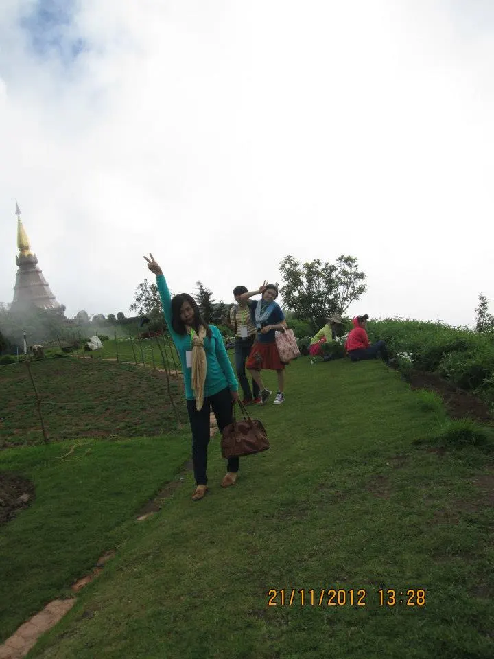 เรานั้นเดินขึ้นมาด้านบนอย่างลำบาก เมื่อเดินขึ้นมาแล้วเรานั้นเดินไปไหว้ในสถานที่ใหม่ ก่อนหน้านั้นจะเห็นไอหมอกค่อนข้างเห็น หญ้าที่สวยงามรายเรียงไปด้วยสีสัน แต่หากว่าวันที่ได้เห็นจะยิ่งเข้าใจ เสื้อผ้าที่ใส่นั้นแม้ว่าจะอากาศหนาวมากเท่าไหร่นักแต่ว่าไม่สามารถที่จะทำอะไรได้เลย