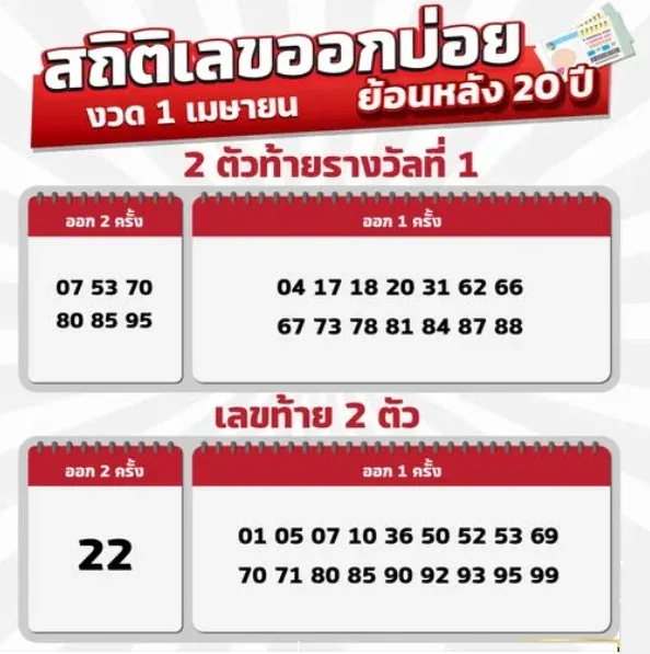 เผยสถิติเลขออกบ่อย ย้อนหลัง 20 ปี..งวดวันที่ 1 เมษายน 69