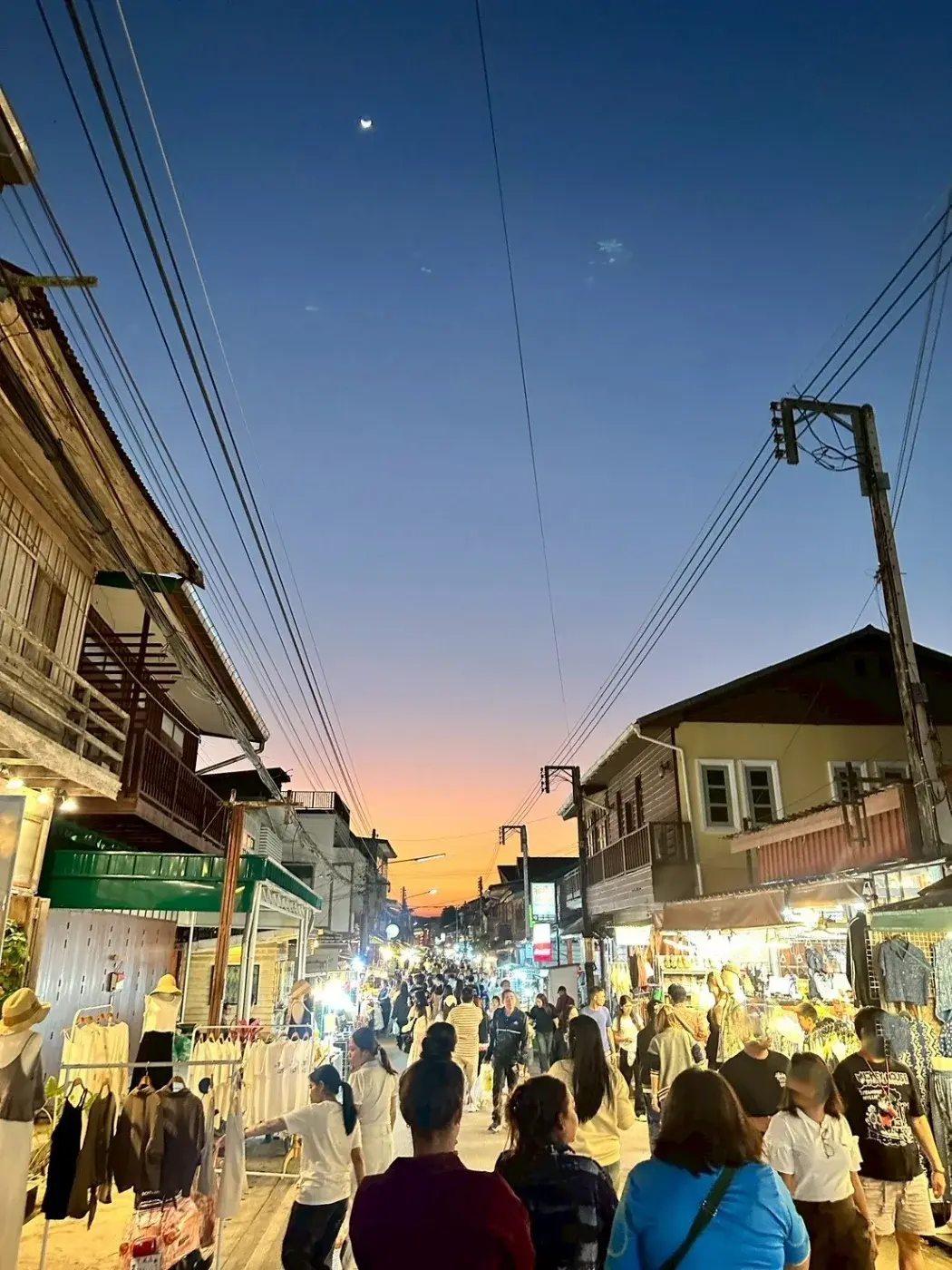 โดยเฉพาะอย่างยิ่งในตอนเย็นๆ ค่ำๆ จะมีแผงลอยขายของต่างๆ ตั้งอยู่เรียงรายมากมายสองข้างทาง เพื่อนๆ จะได้เดินเล่นอย่างสบายใจ และจะได้เจออาหารขึ้นชื่อของเชียงคานสำหรับรับประทานกับครอบครัวหรือเพื่อนๆ ในยามเย็นอีกด้วย