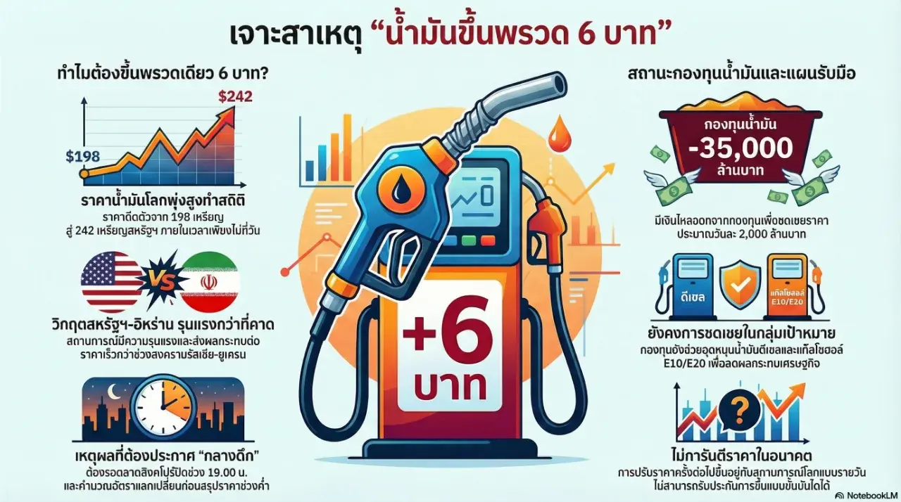 เจาะลึกสาเหตุน้ำมันพุ่งพรวด 6 บาท! กองทุนฯ ถังแตกจริงไหม? แล้วสงกรานต์นี้มีโอกาสแตะ 70 บาทหรือเปล่า?
