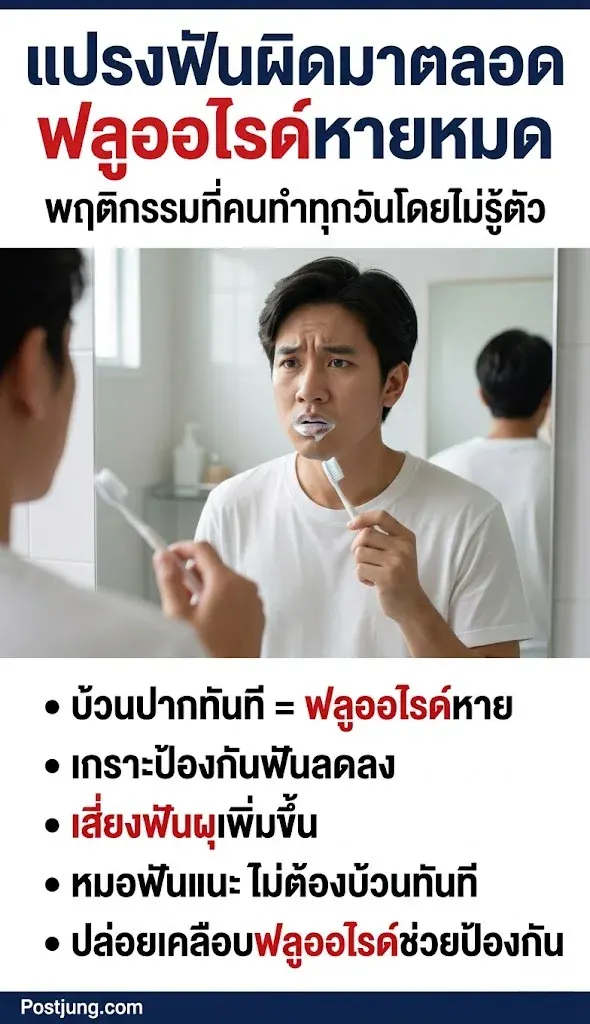 หลายคนอาจคิดว่า “แปรงฟันเสร็จต้องบ้วนปากด้วยน้ำให้สะอาด” คือวิธีที่ถูกต้องที่สุด แต่ข้อมูลจากทันตแพทย์ในปัจจุบันกลับชี้ว่า พฤติกรรมนี้อาจทำให้การปกป้องฟันลดลงอย่างมาก โดยเฉพาะในคนที่มีความเสี่ยงฟันผุ
