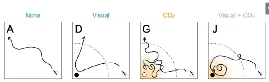 -CO2 และความร้อน: เมื่อยุงได้กลิ่น CO2 หรือสัมผัสความร้อน พวกมันจะชะลอความเร็วลงและวนกลับมาตรวจสอบเป้าหมาย (Double Takes) บ่อยขึ้น