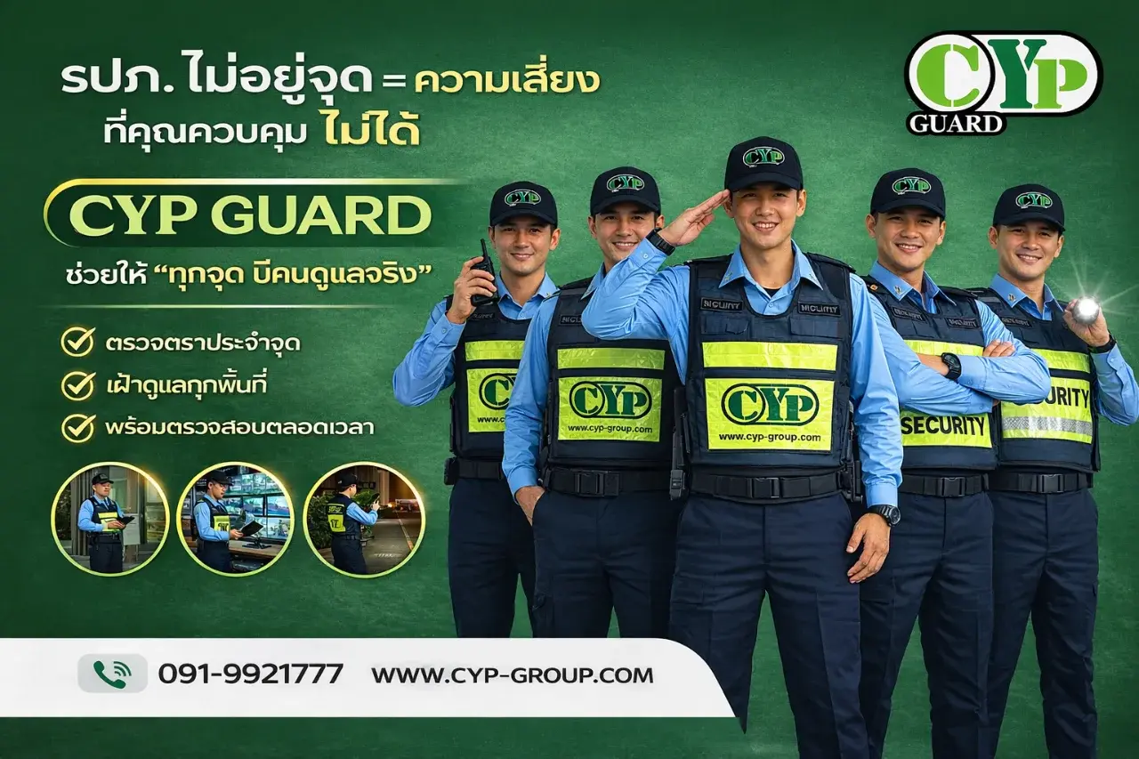 CYP GUARD พร้อมดูแลทุกพื้นที่ของคุณอย่างมืออาชีพ ให้คุณหมดกังวลเรื่องความปลอดภัย และโฟกัสกับการเติบโตของธุรกิจได้อย่างเต็มที่