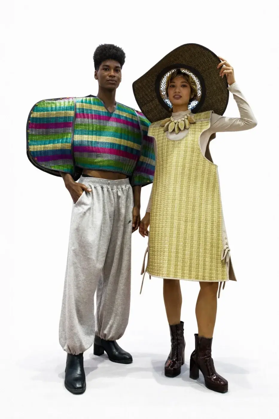 ไฮไลต์สำคัญในปีนี้ คือความร่วมมือกับ สถาบันส่งเสริมศิลปหัตถกรรมไทย (SACIT) ที่นำวัสดุธรรมชาติอย่าง “กก” จากจังหวัดจันทบุรี มาต่อยอดเป็นผลงานแฟชั่นร่วมสมัย ภายใต้แบรนด์ KORKOK