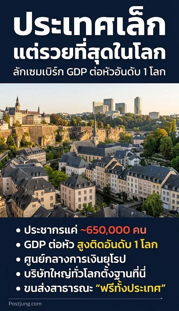 ลักเซมเบิร์กเป็นประเทศขนาดเล็กในยุโรปตะวันตก มีประชากรเพียงประมาณ 6–7 แสนคน แต่กลับครองอันดับต้น ๆ ของโลกในด้าน “GDP ต่อหัว” ต่อเนื่องยาวนานกว่า 10 ปี