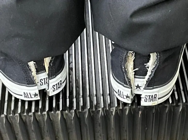 3. ผู้ชายคนนี้มีรองเท้าที่ใส่ซ้อนไว้ในรองเท้าแบบเดียวกันด้วย