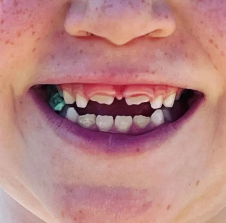 5. ฟันแท้ของลูกชายวัย 6 ขวบของฉันกำลังขึ้น และช่องว่างระหว่างฟันดูเหมือนกับสัญลักษณ์ของแบทแมนเลย
