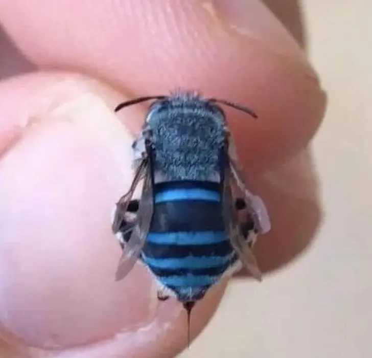 7. ผึ้งไม่ได้มีแต่แถบสีเหลืองและสีน้ำตาลเสมอไป นี่คือผึ้งแถบสีน้ำเงินทางเหนือ