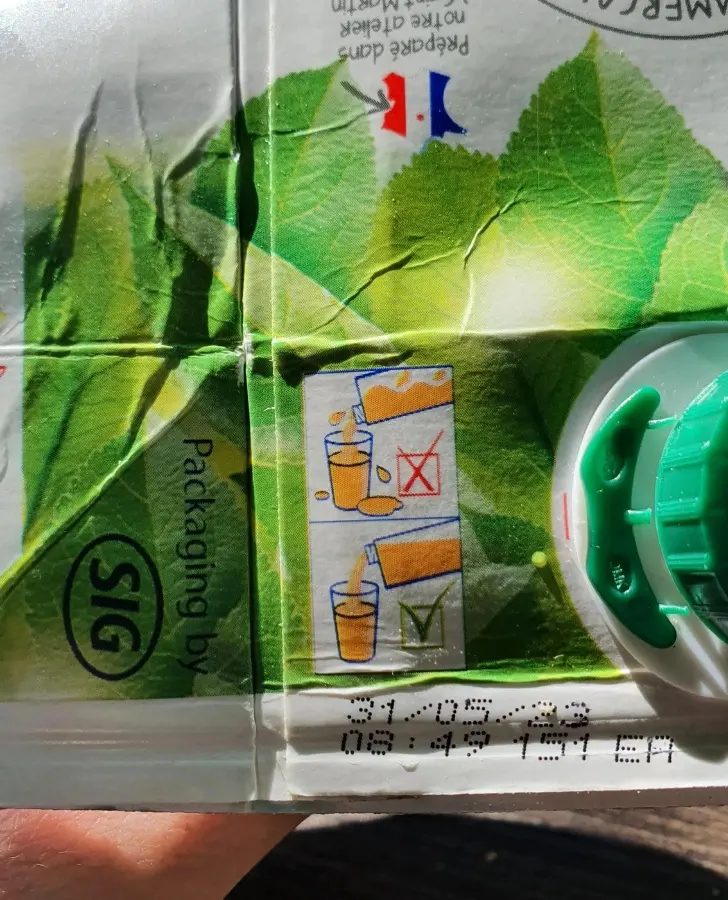 10. บรรจุภัณฑ์น้ำผลไม้นี้มีการอธิบายถึงเคล็ดลับง่าย ๆ ในการรินเครื่องดื่มให้ลื่นไหลไม่หกเลอะเทอะระหว่างริน