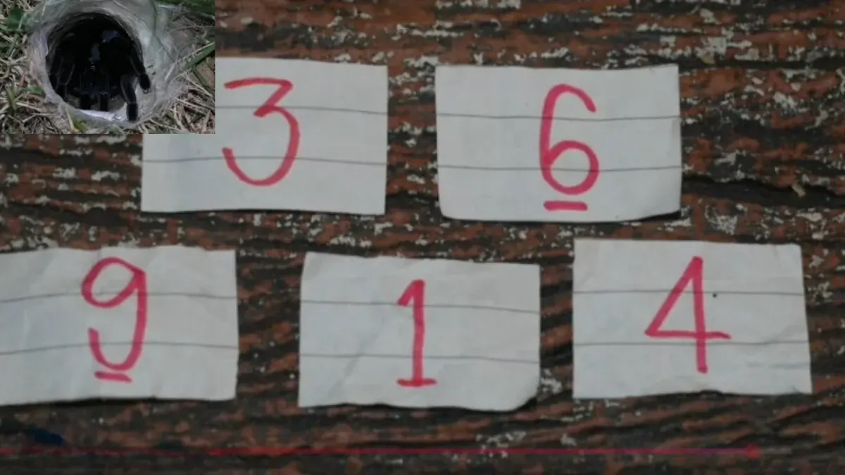 จากการทำพิธีเสี่ยงทาย พญาบึ้งได้คาบม้วนกระดาษตัวเลขออกมาวางไว้ที่บริเวณปากรูตามลำดับดังนี้: