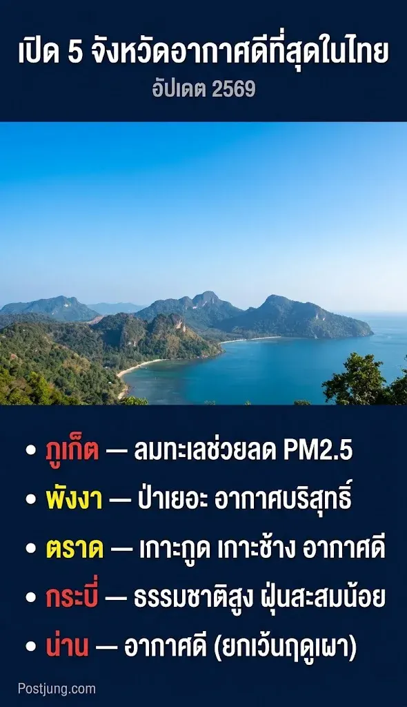 ช่วง PM2.5 สูง หลายพื้นที่อากาศแย่ แต่ยังมีบางจังหวัดที่อากาศดีกว่าอย่างชัดเจน โดยเฉพาะโซนทะเลและพื้นที่สีเขียวหนาแน่น