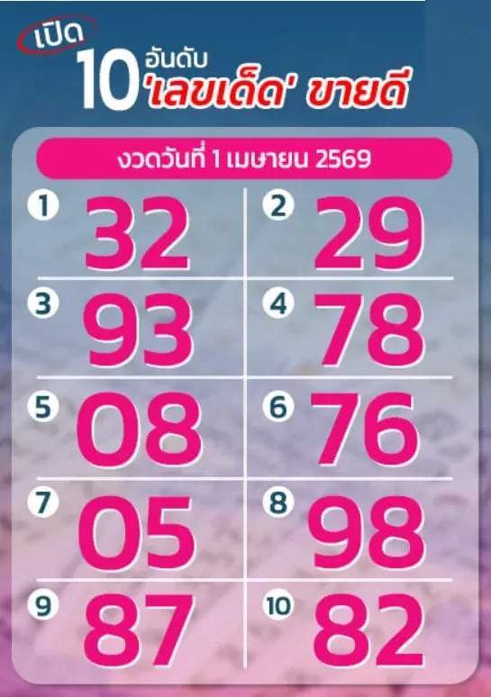 เปิด 10 อันดับเลขเด็ดขายดี งวดวันที่ 1 เมษายน 69..พรุ่งนี้เลย รีบส่องด่วน!!