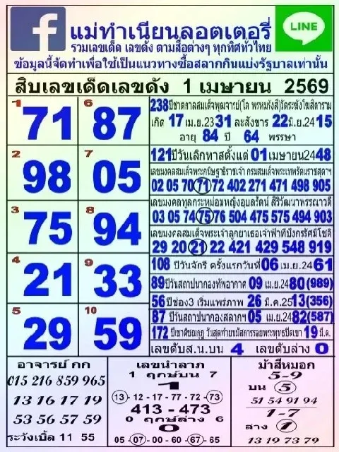 สิบเลขขายดีแม่จำเนียร งวด 1/4/69