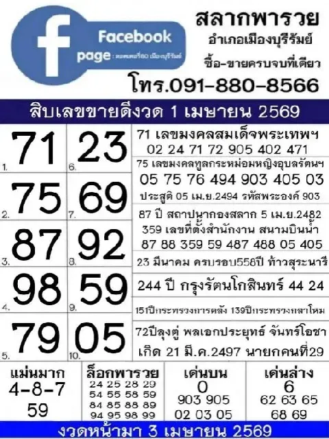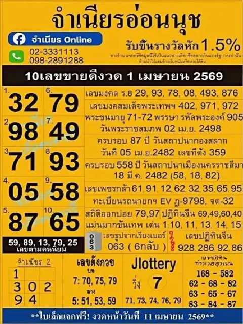 ส่องเลขเด็ด!! มัดรวม 10อันดับ เลขเด็ดขายดี งวดวันที่ 1 เมษายน 2569