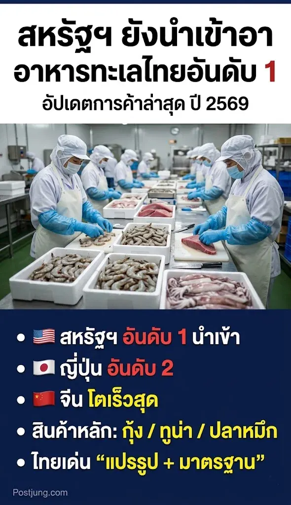 อันดับโลกเริ่มสั่น! เปิดประเทศนำเข้าอาหารทะเลไทยมากสุด