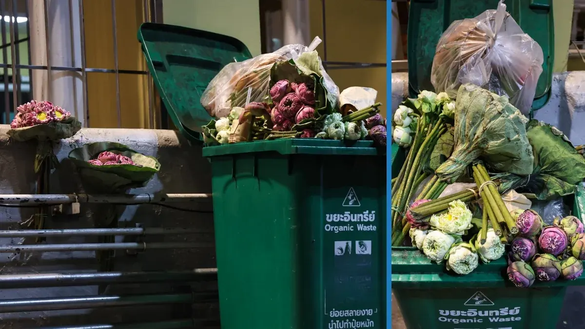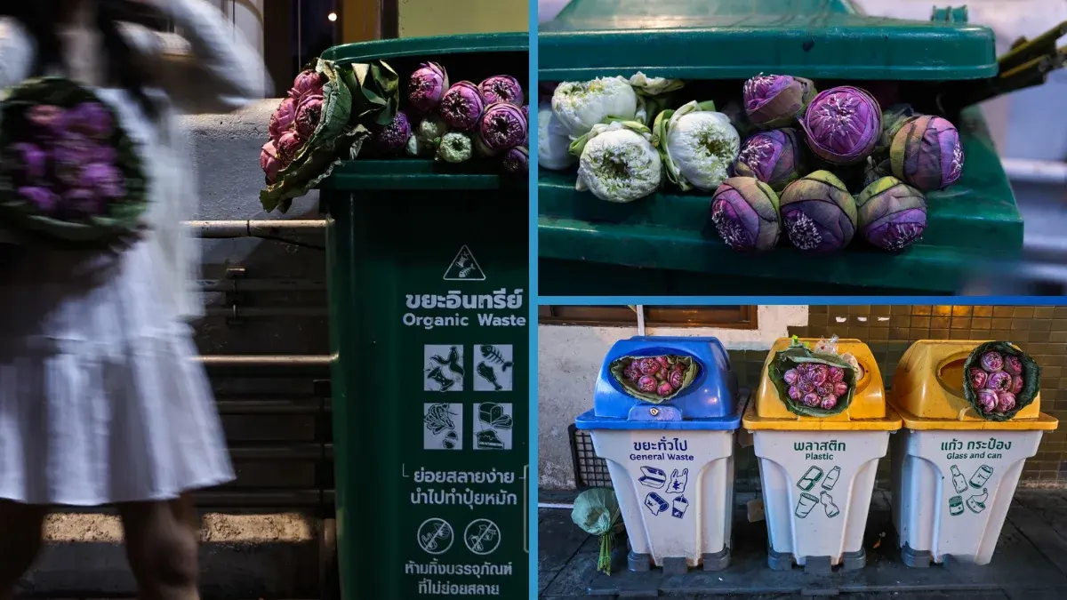 เมื่อดอกบัวถูกทิ้งเต็มถังขยะ ถ่ายรูปลงโซเชี่ยลแล้วก็ "หมดประโยชน์"