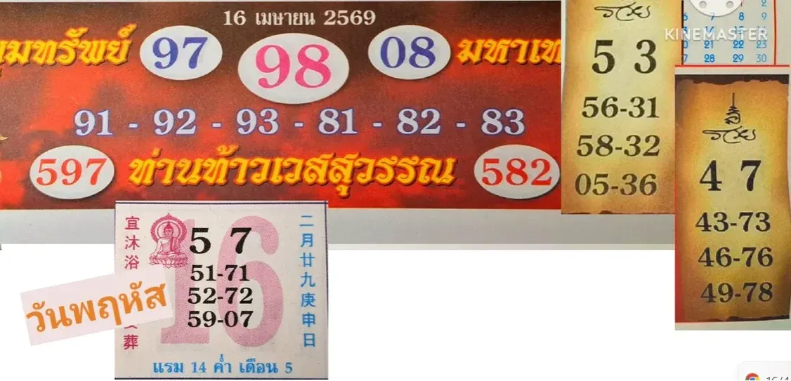 โดยแนวทางลอตเตอรี่ สำหรับ ‘ปฏิทินท่านท้าวเวสสุวรรณ’ งวดวันที่ 16/04/69 มีดังนี้