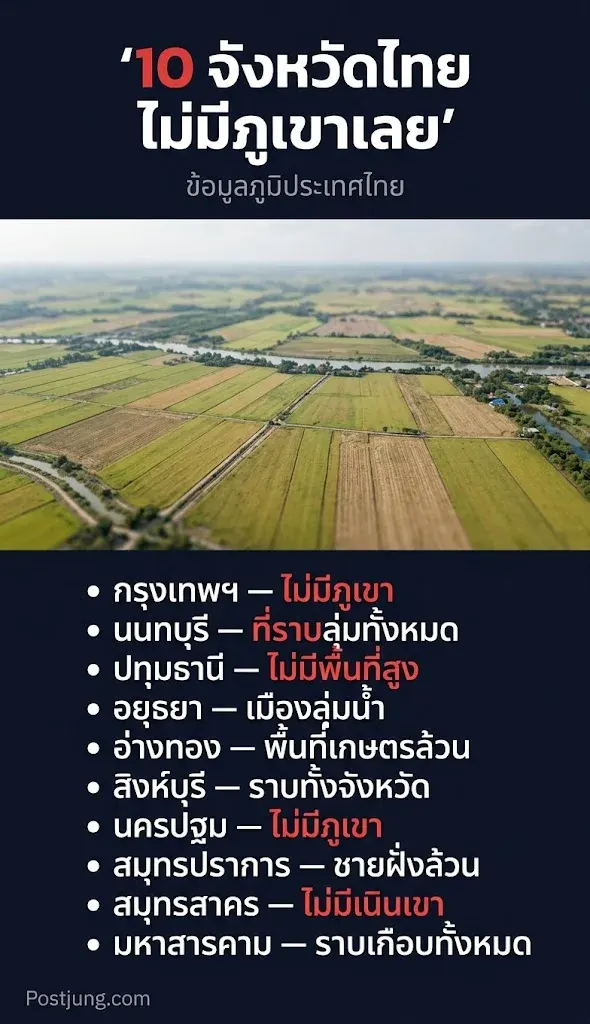แต่ความจริง…มีหลายจังหวัดที่ “ไม่มีภูเขาเลยแม้แต่ลูกเดียว”