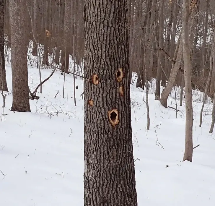 7. ต้นไม้ต้นนี้ที่ถูกนกหัวขวานเจาะจนทำให้มันรู้สึกประหลาดใจ