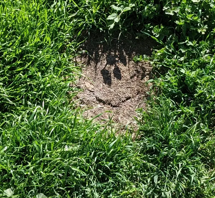 8. นี่เป็นใบหน้ายิ้มแย้มที่เกิดจากเงาหญ้าและรอยแตกบนพื้นดิน