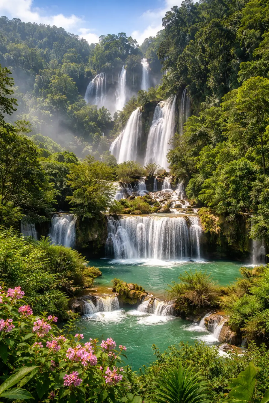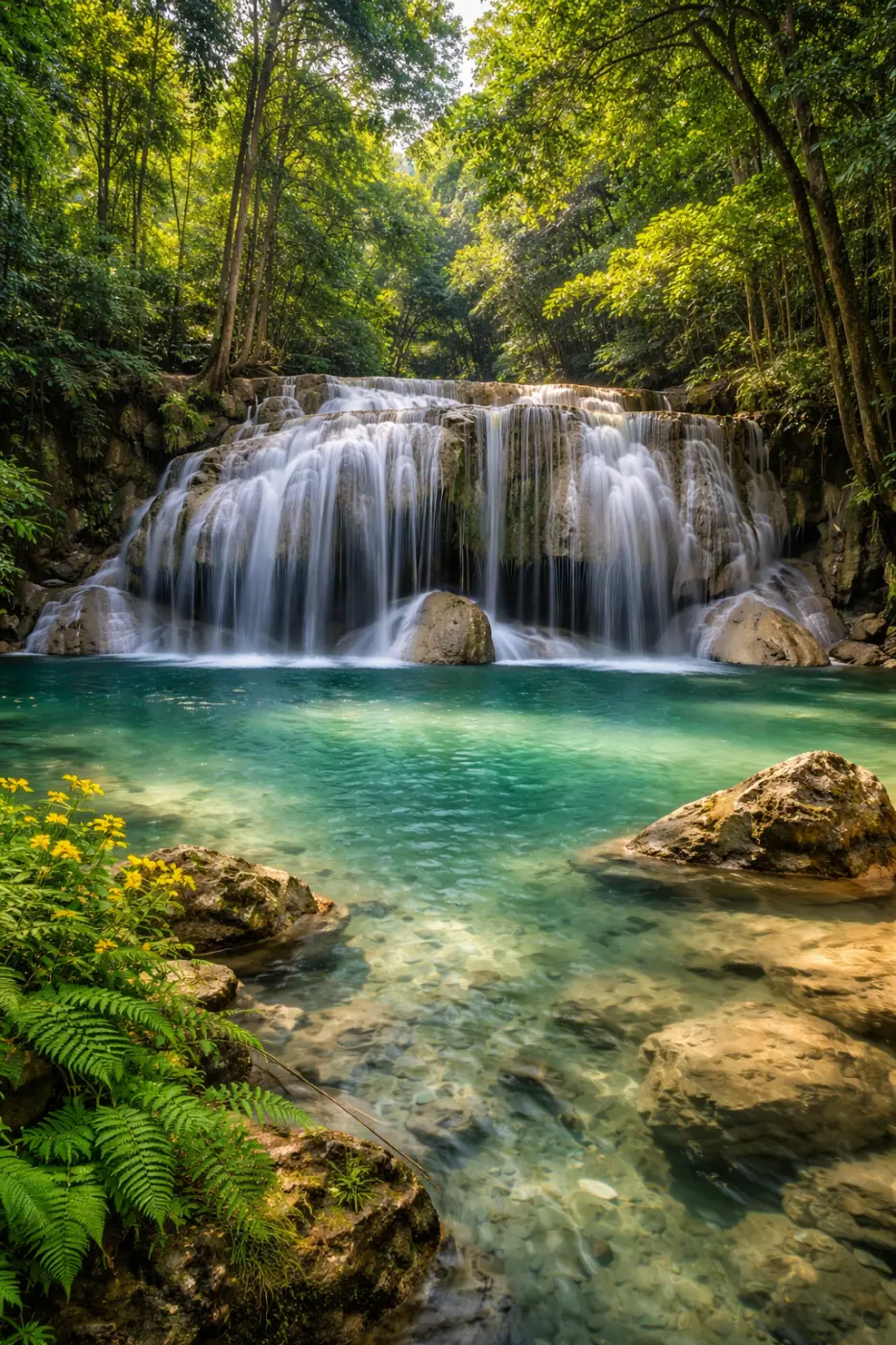 ➡️ ได้รับการยกย่องว่าเป็น “น้ำตกที่สวยที่สุดในไทย” 2. น้ำตกเอราวัณ (กาญจนบุรี) – น้ำสีมรกต
