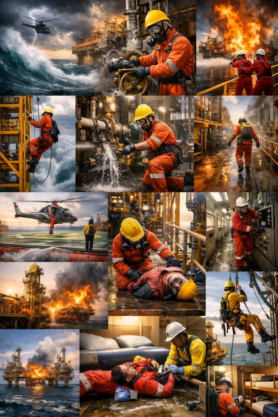 ความเสี่ยงที่คนงานบนแท่นขุดเจาะน้ำมันต้องพบเจอ มีอยู่หลายด้าน เช่น