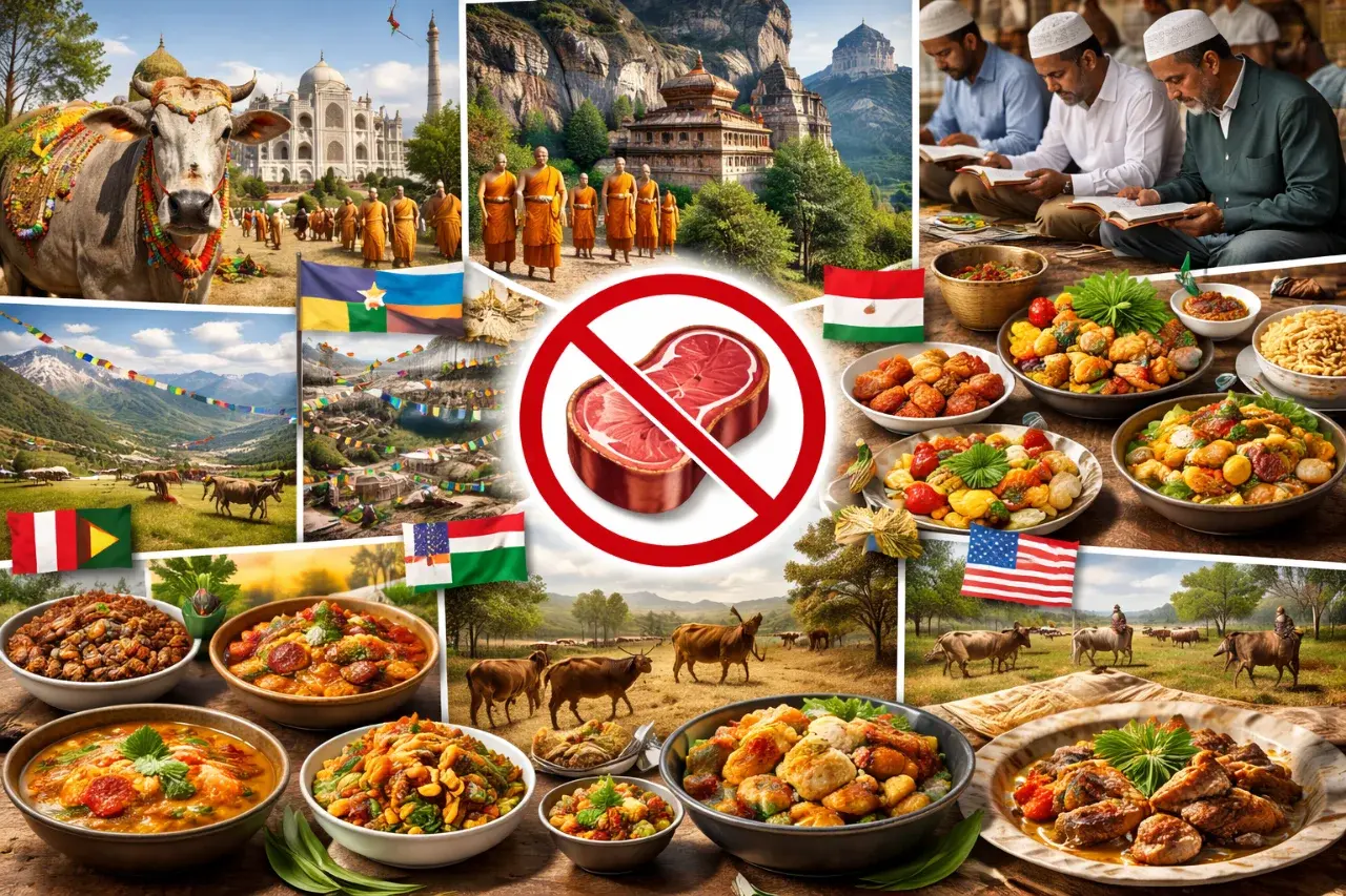 ประเทศแรกที่มักถูกพูดถึงเสมอคือ อินเดีย ซึ่งประชากรส่วนใหญ่นับถือศาสนาฮินดู โดยถือว่าวัวเป็นสัตว์ศักดิ์สิทธิ์ การฆ่าหรือรับประทานเนื้อวัวจึงเป็นเรื่องต้องห้ามในหลายพื้นที่ และบางรัฐยังมีกฎหมายควบคุมอย่างเคร่งครัดอีกด้วย