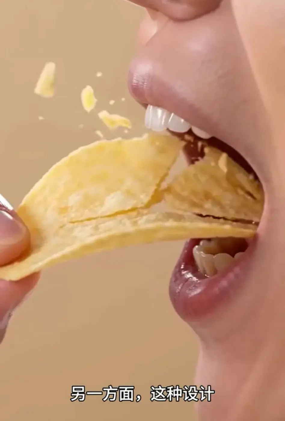 พื้นผิวที่โค้งเว้าช่วยให้ผงปรุงรสเกาะติดได้ดีกว่าแผ่นเรียบ นอกจากนี้ เมื่อสัมผัสกับลิ้น รูปทรงนี้จะรับกับสรีระของปากพอดี ทำให้ผู้กินได้รับรสชาติและความกรอบอย่างเต็มที่ในทุกคำ