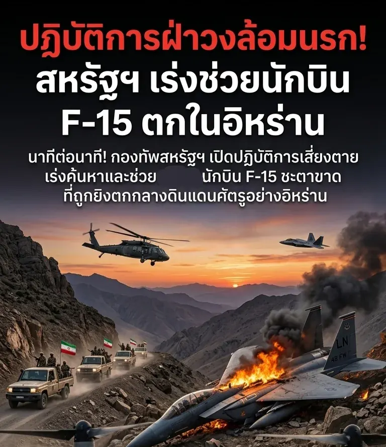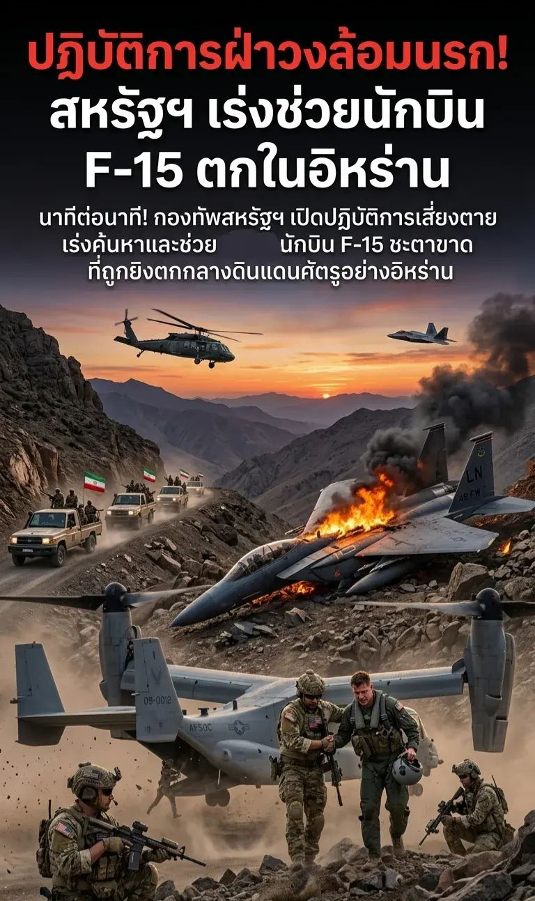 ปฏิบัติการฝ่าวงล้อมนรก! สหรัฐฯ เร่งช่วยนักบิน F-15 ตกในอิหร่าน นาทีต่อนาที! กองทัพสหรัฐฯ เปิดปฏิบัติการเสี่ยงตาย