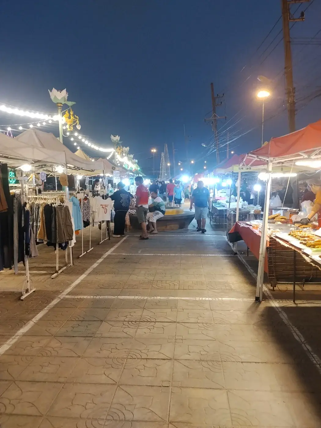 คนขายเยอะ แต่หากว่าคนที่ซื้อหรือคนที่จะบริโภคกลับน้อยลง ส่วนคนที่เดินไปเดินมาส่วนมากก็จะมองเพียงผ่าน ไม่ได้คิดและสื่อสารอะไรมากนัก หัวใจของคนเราเอง หากว่าได้ทานในอาหารที่อร่อย จบลงด้วยส่วนร้อยที่เหมาะสม จะต้องหยุดลงไปจากทุกอย่างแน่นอน วันนี้เรานั้นมาเดินตลาดตรงนี้น่าจะเป็นครั้งที่สอง มีด้วยกันสองวัน คือ ศุกร์และเสาร์หากว่านับในส่วนของตลาดที่นี่นั้นจะมี คือพฤหัสบ่ดี ศุกร์ และเสาร์ รายละเอียดคงจะยากจะเรียบเรียง
