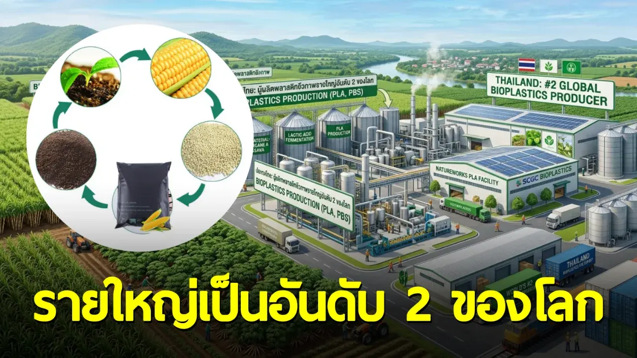 เมืองไทยเราเป็นผู้ผลิต พลาสติกชีวภาพ (Bioplastics) รายใหญ่เป็นอันดับ 2 ของโลก รองจากสหรัฐอเมริกา ด้วยศักยภาพการผลิต 95,000 ตันต่อปี โดยเน้นใช้วัตถุดิบทางการเกษตร เช่น อ้อย และมันสำปะหลัง กว่า 90% ของผลผลิตใช้เพื่อการส่งออก เพื่อตอบสนองความต้องการระดับโลกและสนับสนุนเศรษฐกิจ BCG