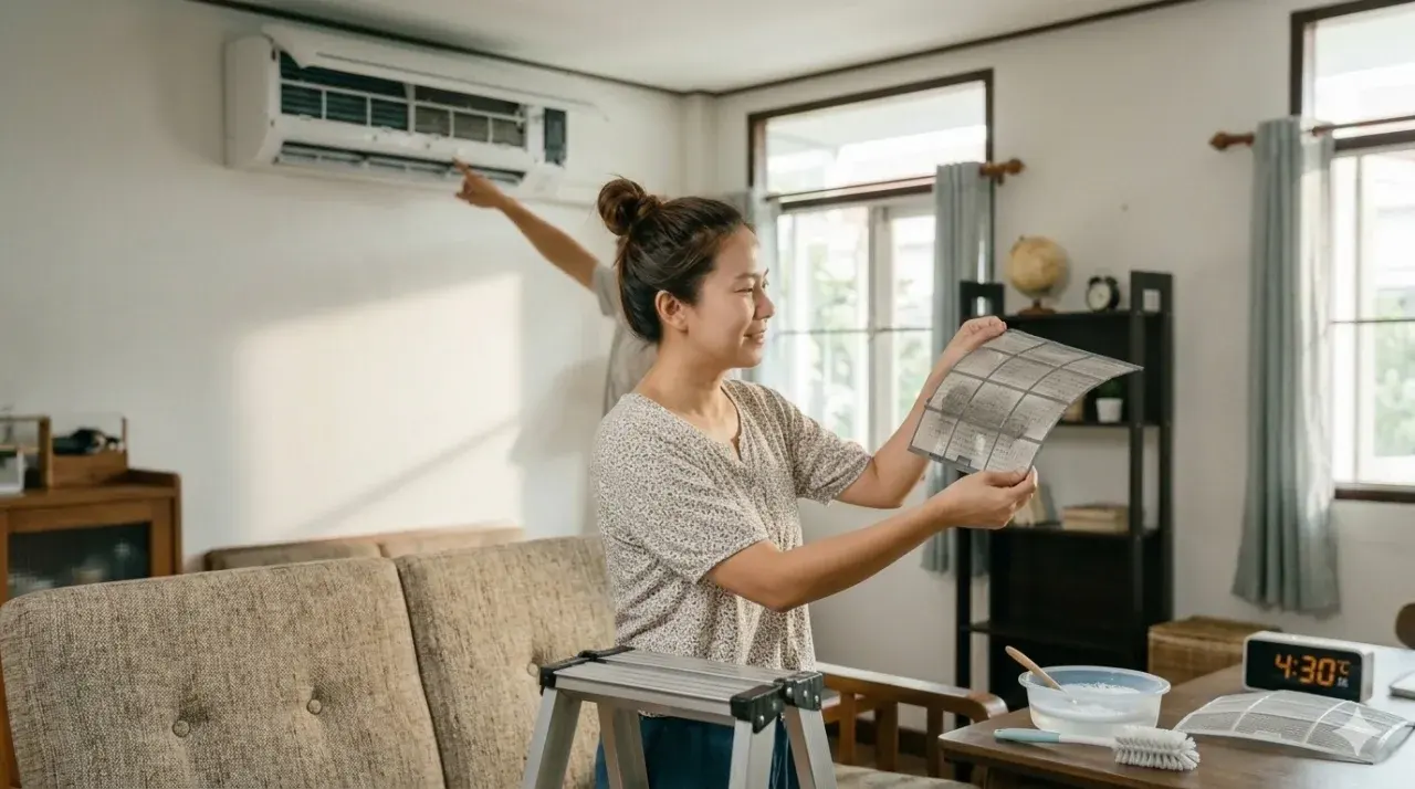 วิธีแก้ง่าย ๆ : ไม่ต้องรอช่างค่ะ! วันหยุดนี้ลองหาบันไดที่บ้านมาปีนขึ้นไปเปิดฝาหน้าแอร์ แล้วถอดแผ่นกรองดำ ๆ ออกมาฉีดน้ำล้างเองเลยค่ะ ตากให้แห้งแล้วใส่กลับเข้าไป แค่นี้แอร์ก็หายใจคล่องขึ้น ลมพุ่งแรงขึ้นทันตาเห็น ทำเดือนละครั้งรับรองเห็นความต่างในบิลค่าไฟแน่นอน!