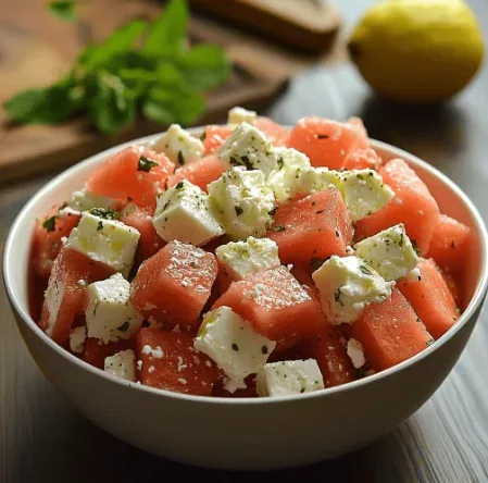 ส่วนคู่ที่ดูโดดเด่นและมีความเป็นเมนูคาเฟ่มากที่สุดคงหนีไม่พ้น แตงโมกับชีส โดยเฉพาะชีสขาวรสเค็มอย่างเฟตาหรือชีสเนื้อนุ่มบางชนิด หลายสำนักอาหารใช้คู่นี้เป็นฐานของสลัดหน้าร้อน เพราะแตงโมมีความหวานฉ่ำและให้ความรู้สึกสด ส่วนชีสช่วยตัดด้วยความเค็มและความครีมมี่ ทำให้รสชาติไม่ตรงเกินไปและไม่น่าเบื่อ Food & Wine ยังยกแตงโมกับชีสเป็นหนึ่งในชุดรสที่ทำงานได้ดีในเมนูสลัดหน้าร้อน ขณะที่สูตรอาหารหลายแห่งก็ใช้หลักการเดียวกัน คือปล่อยให้ความหวานของแตงโมชนกับความเค็มของชีสเพื่อให้เกิดรสที่เด่นชัดขึ้นทั้งสองฝั่ง