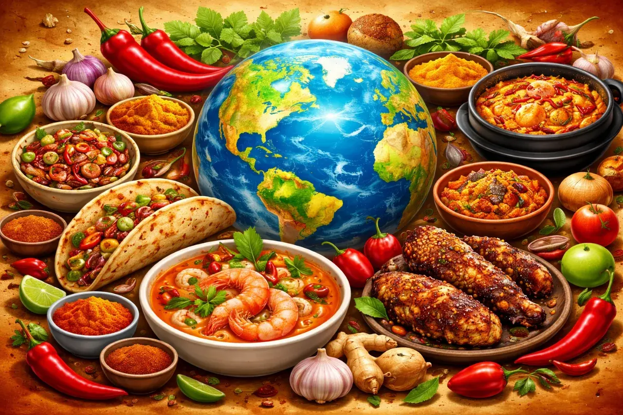 บางประเทศถือว่าพริกเป็นเพียงเครื่องปรุงเพิ่มรสชาติ แต่ในบางดินแดน พริกกลับกลายเป็นพระเอกของจานอาหารจนแทบขาดไม่ได้ ไม่ว่าจะเป็นพริกสด พริกแห้ง หรือเครื่องแกงที่ตำรวมกับพริกจำนวนมาก จนทำให้อาหารในประเทศเหล่านั้นมีชื่อเสียงเรื่องความเผ็ดร้อนชนิดที่ว่าใครไม่คุ้นเคยอาจต้องมีน้ำตาซึมกันกลางโต๊ะอาหาร