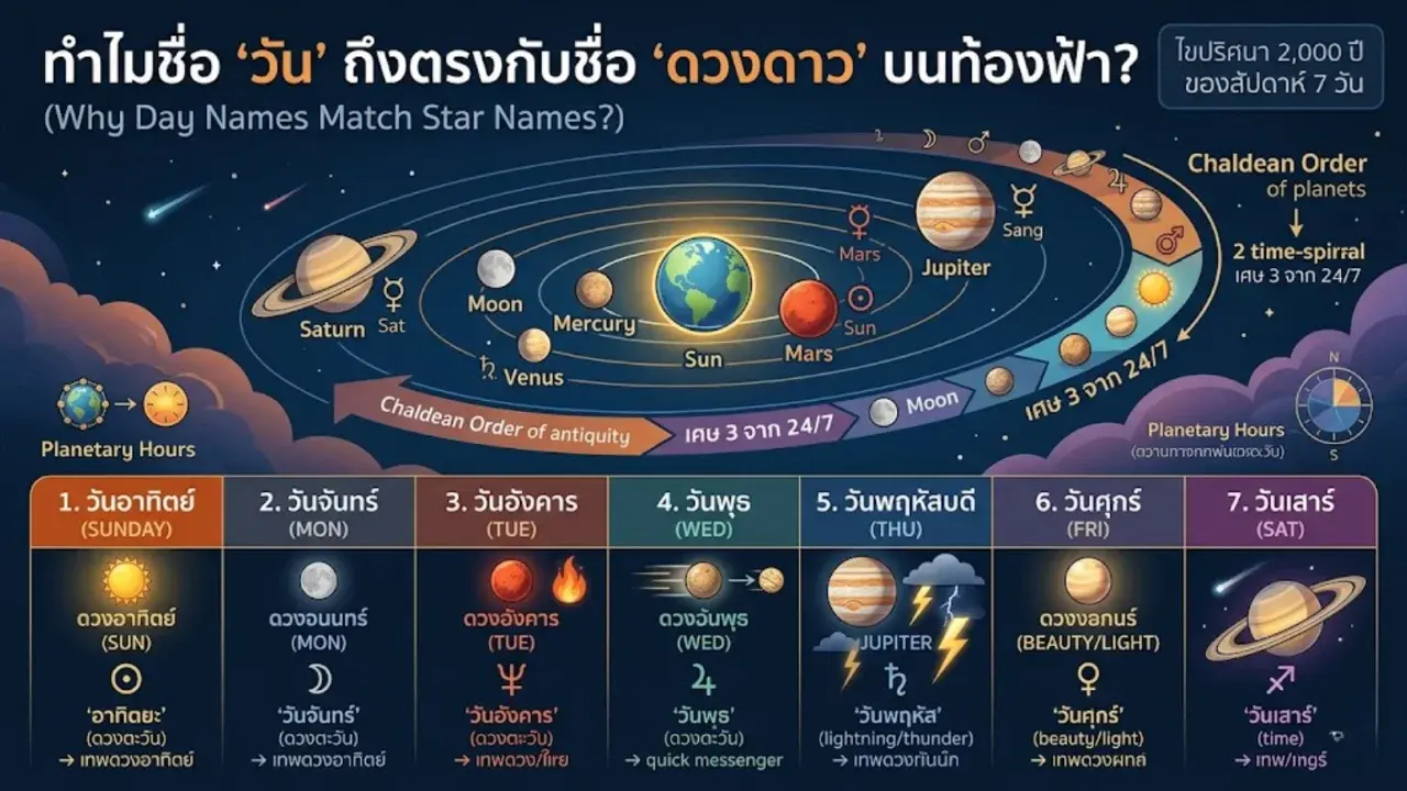 ไขปริศนา 2,000 ปี: ทำไมชื่อ "วัน" ถึงตรงกับชื่อ "ดวงดาว" บนท้องฟ้า