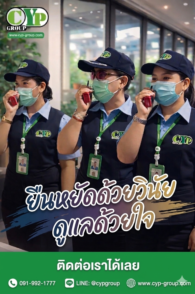 หากท่านกำลังมองหาพันธมิตรด้านความปลอดภัยที่เข้าใจทั้ง "ระบบ" และ "หัวใจ" ให้ CYP Group ได้ดูแลท่าน เพราะเราไม่ได้แค่เฝ้ายาม...แต่เราดูแลความสุขของคุณ