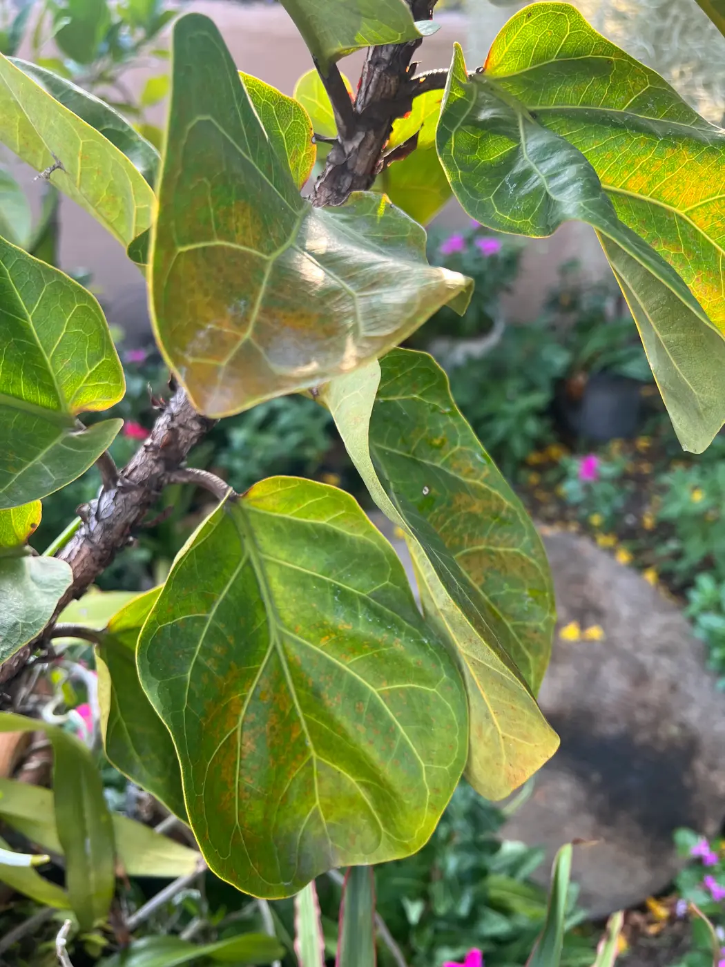 - ลักษณะเด่น: ใบใหญ่หนา สีเขียวเข้ม รูปคล้ายไวโอลิน