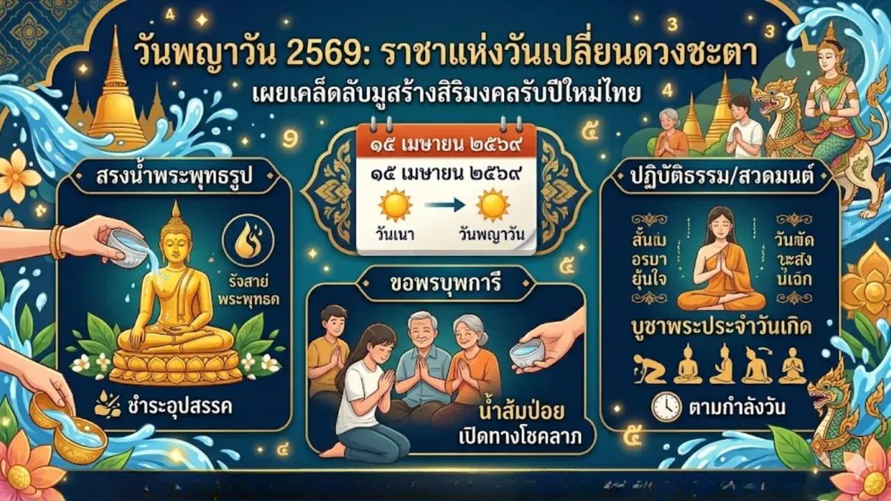 วันพญาวัน 2569 ในวันที่ 15 เมษายนนี้ จึงไม่ได้เป็นเพียงวันสิ้นสุดการเล่นน้ำสงกรานต์ แต่เป็นวันเถลิงศกที่ทรงอิทธิพลต่อการเปลี่ยนดวงชะตา การสละเวลาเพียงเล็กน้อยเพื่อประกอบศาสนพิธีหรือขอพรจากผู้มีพระคุณในวันนี้ จะเป็นจุดเริ่มต้นที่สำคัญในการสร้างพลังใจและเปิดประตูสู่ความสำเร็จ ความเฮง และความปังอย่างยั่งยืนไปตลอดทั้งปี