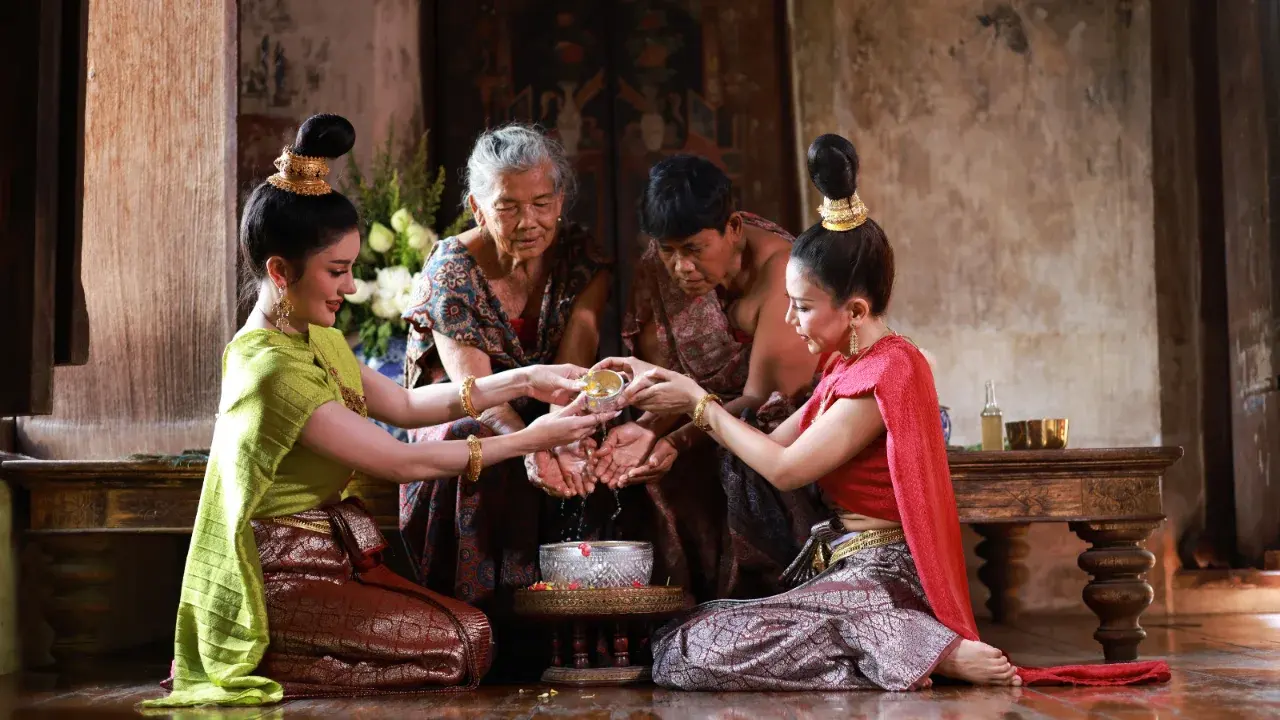 ขอขมาและขอพรบุพการี: พ่อแม่คือพระในบ้าน พรจากปากท่านในวันพญาวันเปรียบเสมือน "วาจาสิทธิ์" ที่จะเปิดทางโชคลาภให้ลูกหลาน