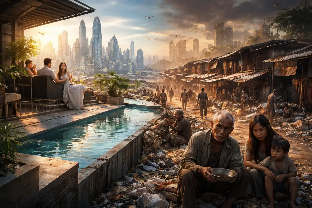 นักวิชาการหลายฝ่ายจึงเตือนว่า หากประเทศไทยไม่เร่งแก้ไขปัญหาเชิงโครงสร้าง ไม่ว่าจะเป็นการพัฒนาคุณภาพการศึกษา การยกระดับทักษะแรงงาน หรือการกระจายโอกาสทางเศรษฐกิจไปสู่ภูมิภาคต่าง ๆ ภาพอนาคตในอีกหลายสิบปีข้างหน้าอาจกลายเป็นสังคมที่ “คนรวยสบายมากขึ้น ส่วนคนจนก็ลำบากหนักกว่าเดิม”